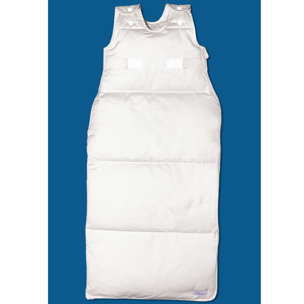 For sizing, measure your baby around the circumference of the chest, and from the shoulders to the feet.